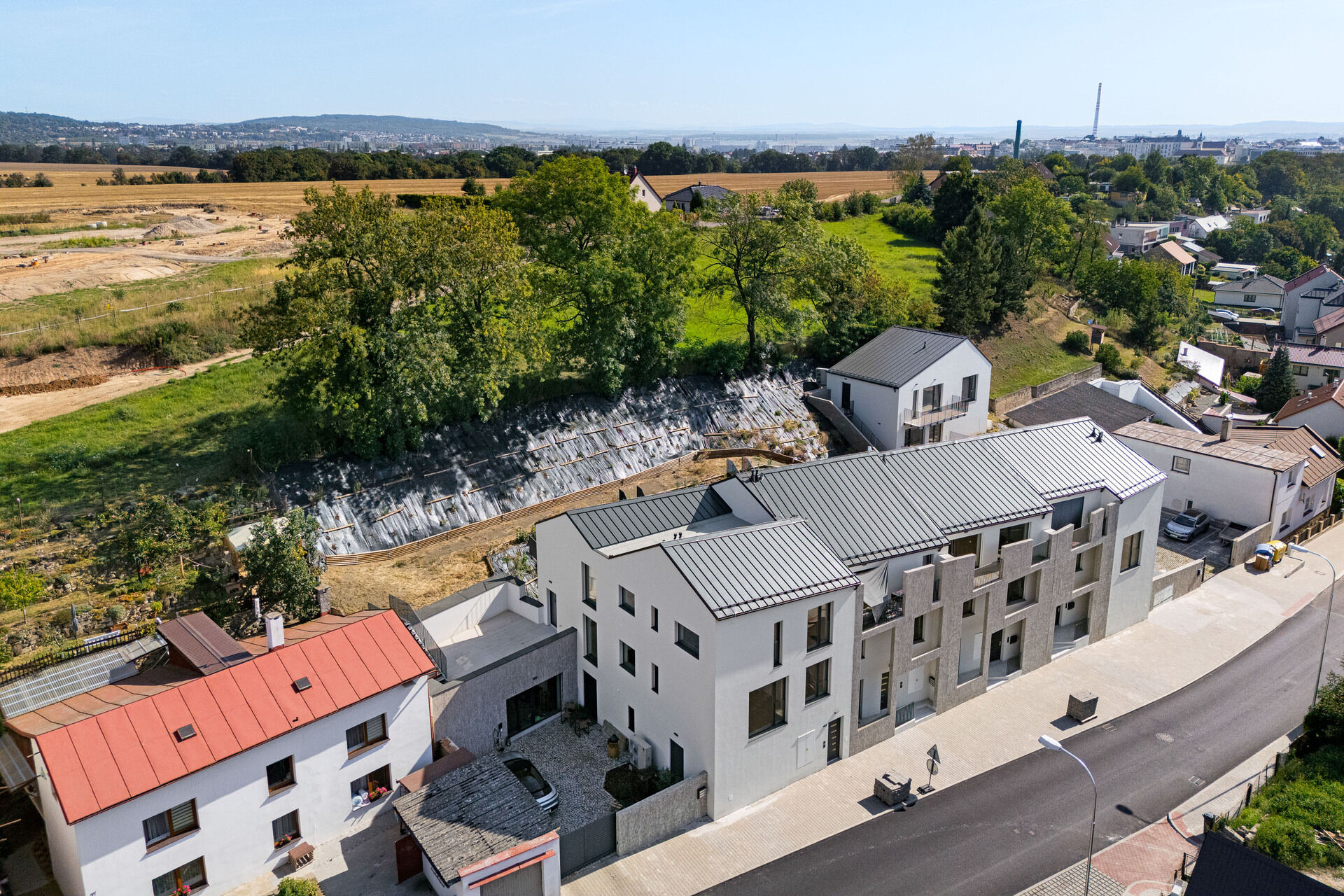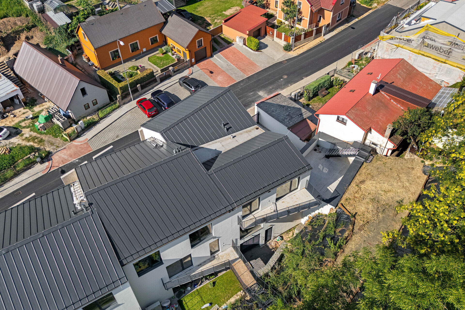 - vlastní parkovací stání přímo u domu (oplocené s dálkově ovládanou vjezdovou bránou)